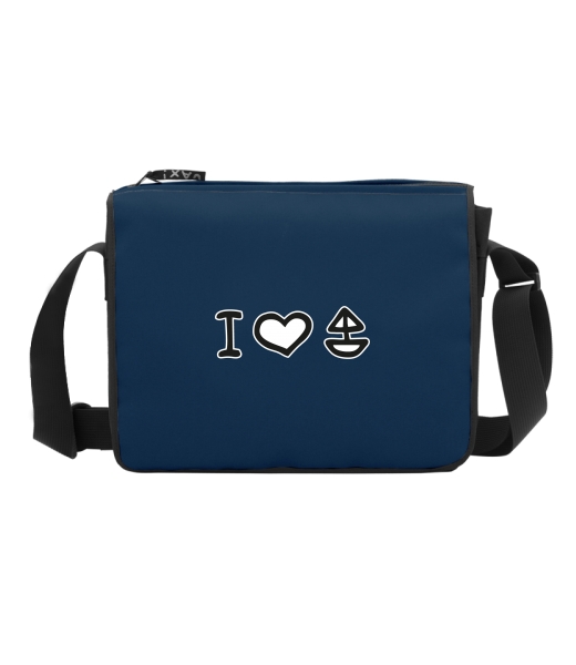 Classic shoulder bag TASPRA, with a choice of original prints UAX with design 1102 I LOVE YACHTING in color MIDNIGHT BLUE