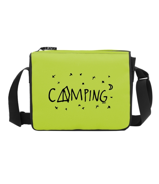 Classic shoulder bag TASPRA, with a choice of original prints UAX with design 1112 CAMPING in color GREEN LIMET