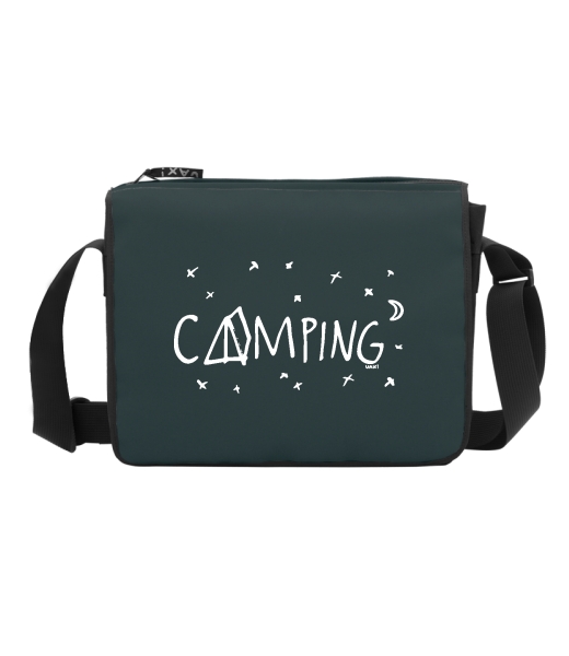 Classic shoulder bag TASPRA, with a choice of original prints UAX with design 1112 CAMPING in color GREY INK