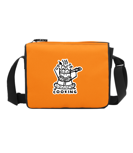 Classic shoulder bag TASPRA, with a choice of original prints UAX with design 1117 COOKING in color SIGNAL ORANGE