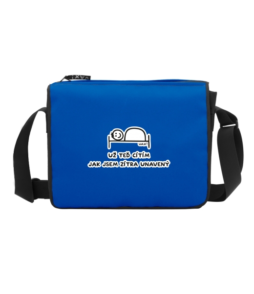 Classic shoulder bag TASPRA, with a choice of original prints UAX with design 1200 UŽ TEĎ CÍTÍM JAK JSEM ZÍTRA UNAVENÝ in color CLASSIC BLUE