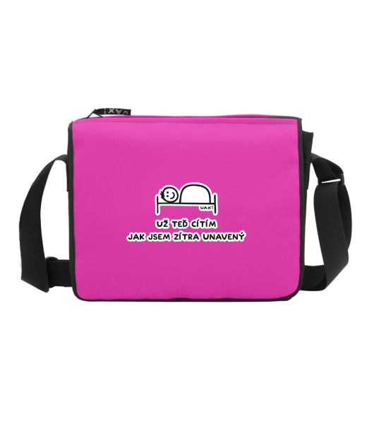 Classic shoulder bag TASPRA, with a choice of original prints UAX with design 1200 UŽ TEĎ CÍTÍM JAK JSEM ZÍTRA UNAVENÝ in color INDIAN LILA