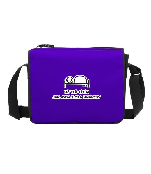 Classic shoulder bag TASPRA, with a choice of original prints UAX with design 1200 UŽ TEĎ CÍTÍM JAK JSEM ZÍTRA UNAVENÝ in color VIOLET