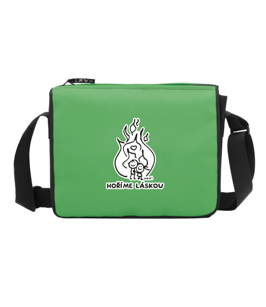 Classic shoulder bag TASPRA, with a choice of original prints UAX with design 1208 HOŘÍME LÁSKOU in color BRIGHT GREEN