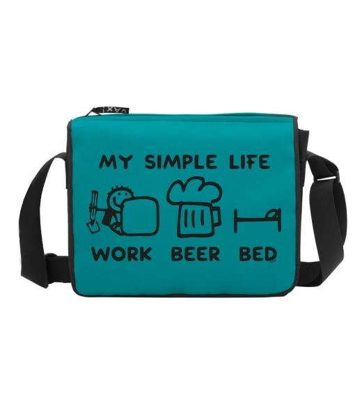 Classic shoulder bag TASPRA, with a choice of original prints UAX with design 1211 MY SIMPLE LIFE WORK BEER BED in color TURQUOISE