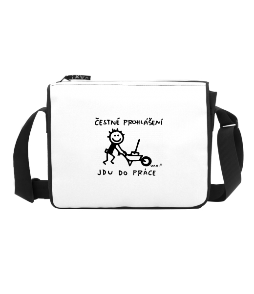Classic shoulder bag TASPRA, with a choice of original prints UAX with design 1305 ČESTNÉ PROHLÁŠENÍ JDU DO PRÁCE 2 in color WHITE