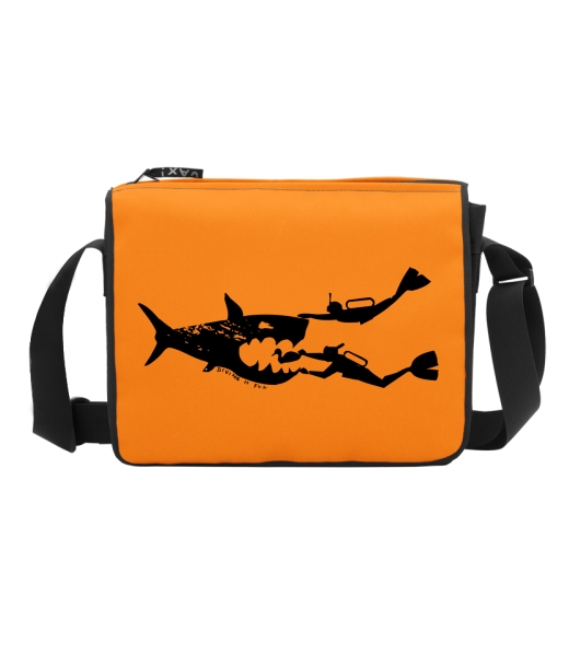 Classic shoulder bag TASPRA, with a choice of original prints UAX with design 252 DIVING IS FUN in color SIGNAL ORANGE