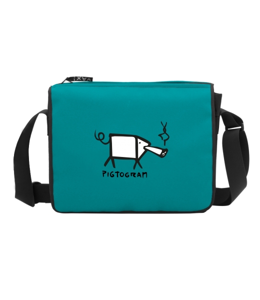 Classic shoulder bag TASPRA, with a choice of original prints UAX with design 367 PIGTOGRAM in color TURQUOISE