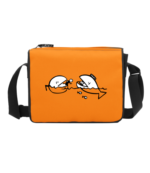 Classic shoulder bag TASPRA, with a choice of original prints UAX with design 385 FISH TAXI in color SIGNAL ORANGE
