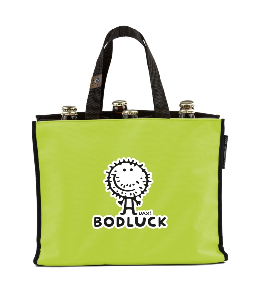 BEER CARRIER - bag for beer with design 1002 BODLUCK in color GREEN LIMET