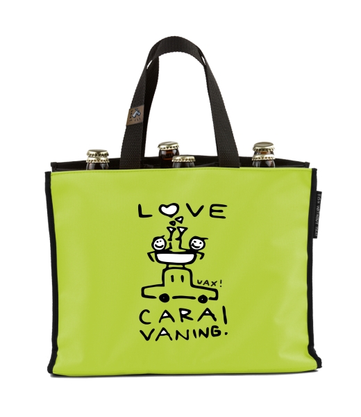 BEER CARRIER - bag for beer with design 1026 LOVE CARA VANING in color GREEN LIMET