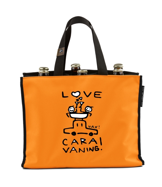 BEER CARRIER - bag for beer with design 1026 LOVE CARA VANING in color SIGNAL ORANGE
