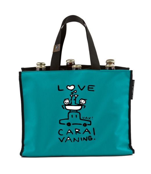 BEER CARRIER - bag for beer with design 1026 LOVE CARA VANING in color TURQUOISE