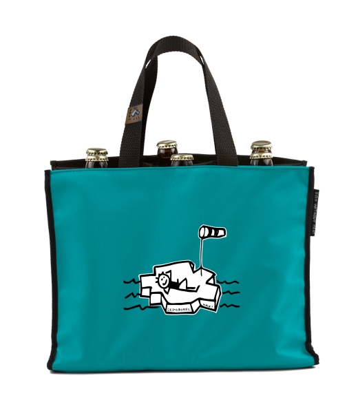 BEER CARRIER - bag for beer with design 1029 LEDOBOREC in color TURQUOISE