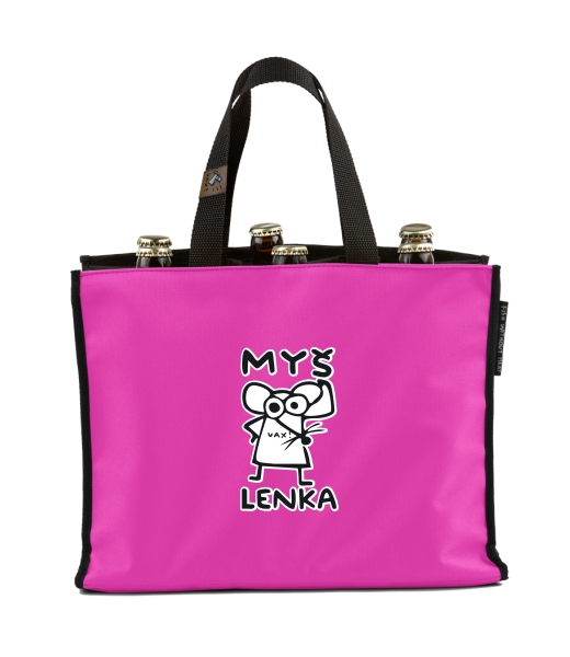 BEER CARRIER - bag for beer with design 1038 MYŠ LENKA in color INDIAN LILA