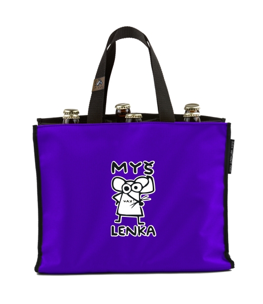 BEER CARRIER - bag for beer with design 1038 MYŠ LENKA in color VIOLET