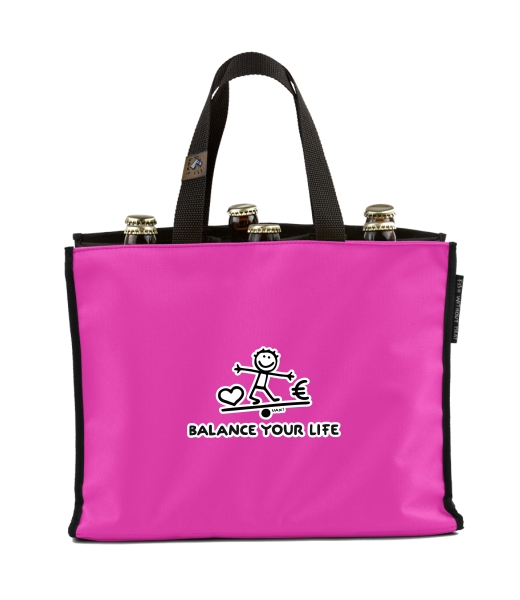 BEER CARRIER - bag for beer with design 1039 BALANCE YOUR LIFE in color INDIAN LILA