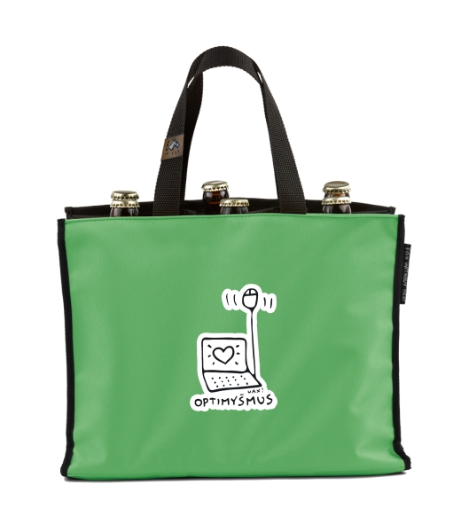 BEER CARRIER - bag for beer with design 1040 OPTIMYŠMUS in color BRIGHT GREEN