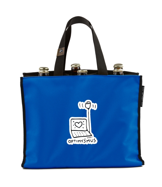 BEER CARRIER - bag for beer with design 1040 OPTIMYŠMUS in color CLASSIC BLUE