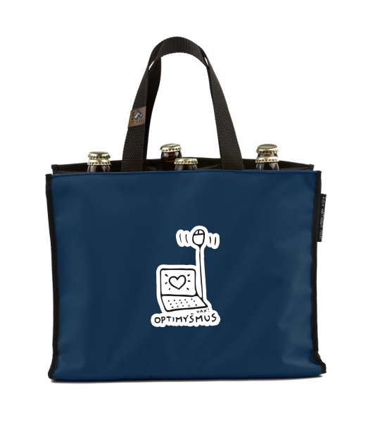 BEER CARRIER - bag for beer with design 1040 OPTIMYŠMUS in color MIDNIGHT BLUE
