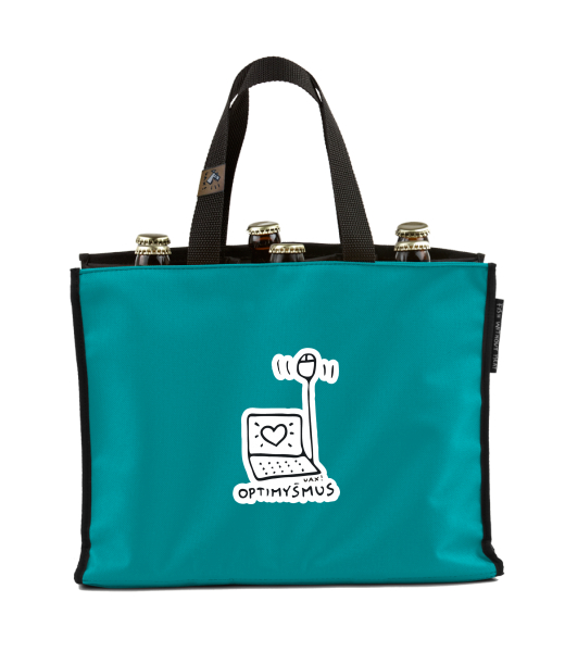 BEER CARRIER - bag for beer with design 1040 OPTIMYŠMUS in color TURQUOISE
