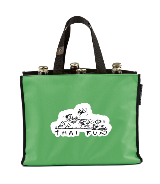 BEER CARRIER - bag for beer with design 1041 THAI FUN in color BRIGHT GREEN
