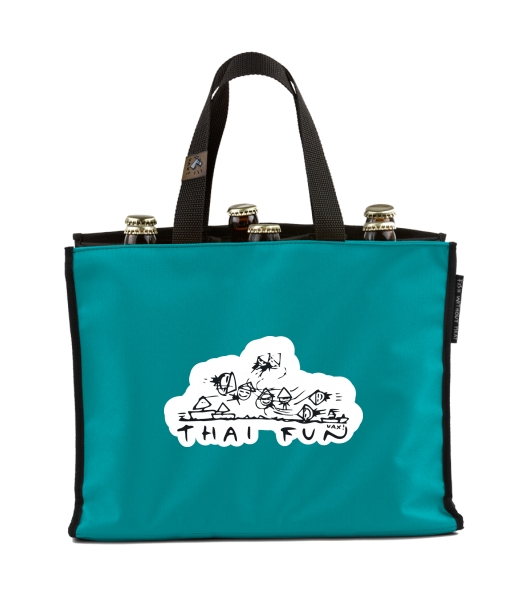 BEER CARRIER - bag for beer with design 1041 THAI FUN in color TURQUOISE