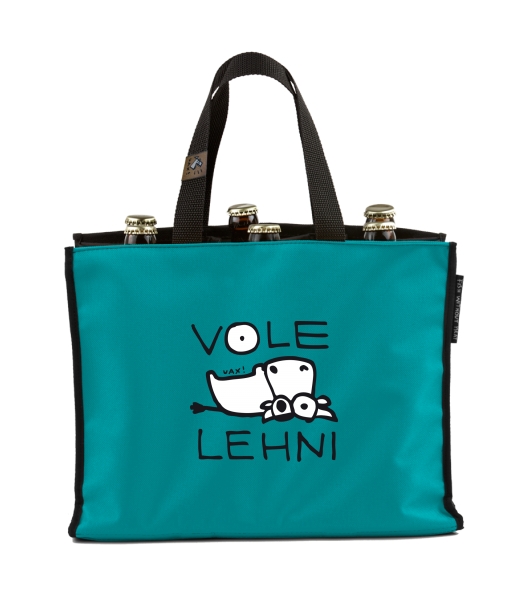 BEER CARRIER - bag for beer with design 1045 VOLE LEHNI in color TURQUOISE