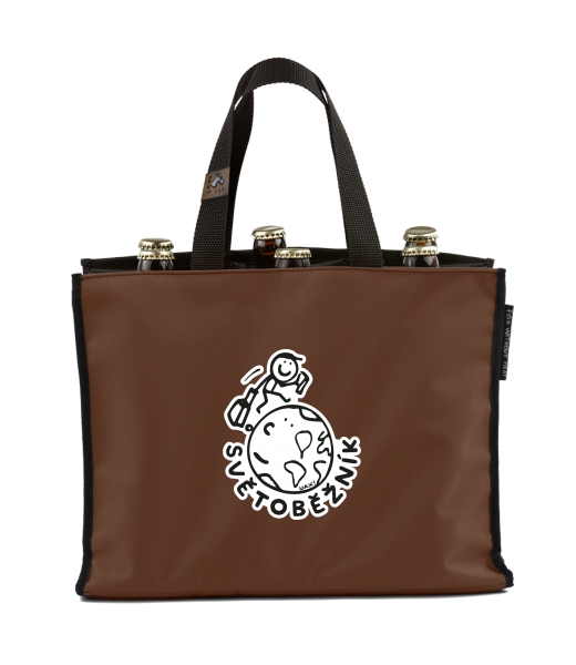 BEER CARRIER - bag for beer with design 1047 SVĚTOBĚŽNÍK in color BROWN SUGAR