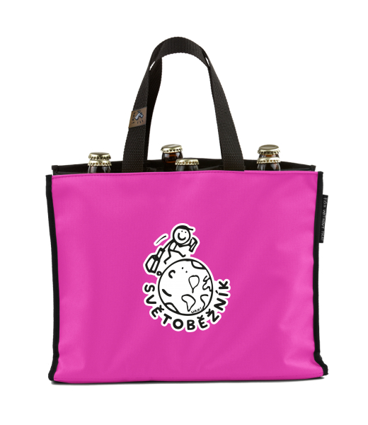 BEER CARRIER - bag for beer with design 1047 SVĚTOBĚŽNÍK in color INDIAN LILA