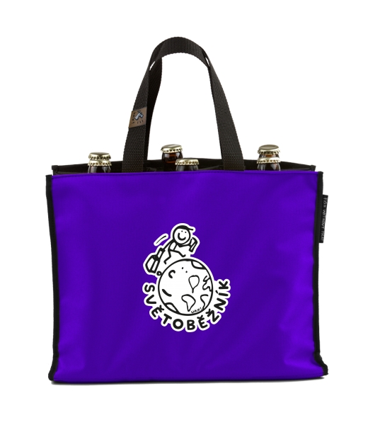 BEER CARRIER - bag for beer with design 1047 SVĚTOBĚŽNÍK in color VIOLET