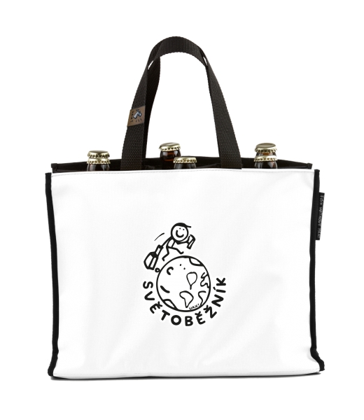 BEER CARRIER - bag for beer with design 1047 SVĚTOBĚŽNÍK in color WHITE