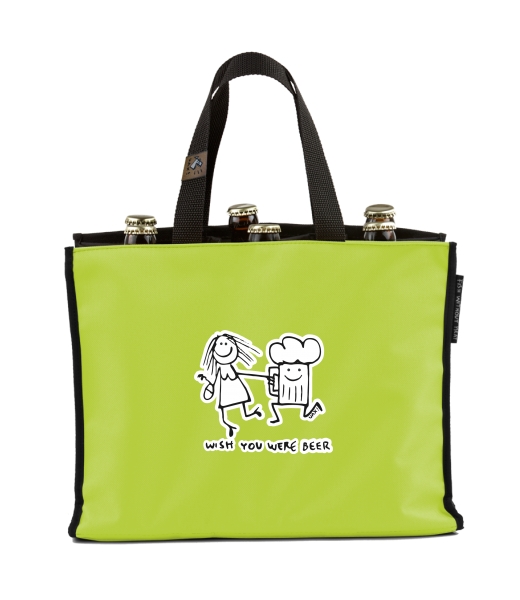 BEER CARRIER - bag for beer with design 1049 WISH YOU WERE BEER in color GREEN LIMET