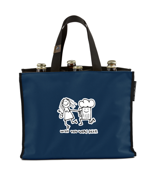 BEER CARRIER - bag for beer with design 1049 WISH YOU WERE BEER in color MIDNIGHT BLUE