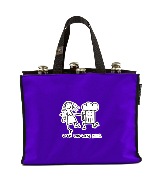 BEER CARRIER - bag for beer with design 1049 WISH YOU WERE BEER in color VIOLET