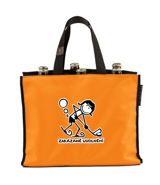 BEER CARRIER - bag for beer with design 1059 ZAKÁZANÉ UVOLNĚNÍ in color SIGNAL ORANGE