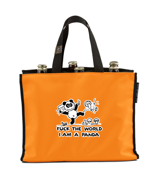 BEER CARRIER - bag for beer with design 1060 I AM A PANDA in color SIGNAL ORANGE
