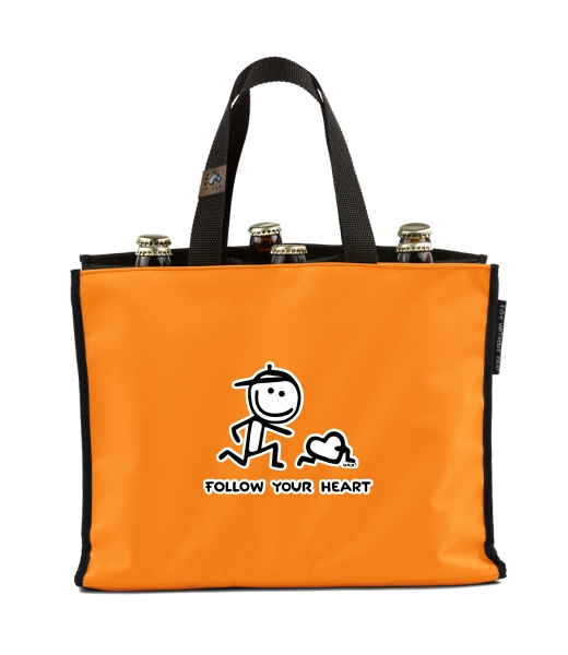 BEER CARRIER - bag for beer with design 1063 FOLOW YOUR HEART in color SIGNAL ORANGE