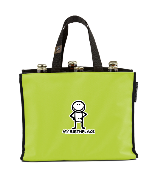BEER CARRIER - bag for beer with design 1069 MY BIRTHPLACE in color GREEN LIMET