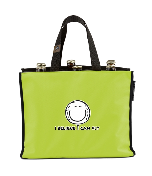 BEER CARRIER - bag for beer with design 1070 I BELIEVE I CAN FLY in color GREEN LIMET