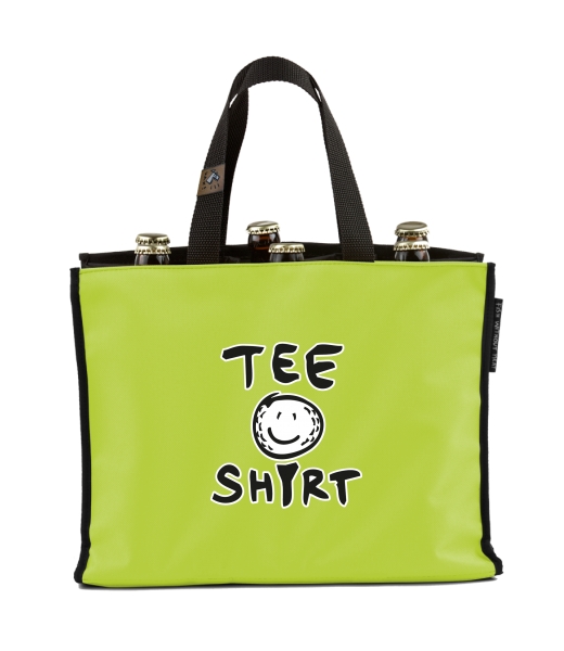 BEER CARRIER - bag for beer with design 1071 TEE SHIRT in color GREEN LIMET