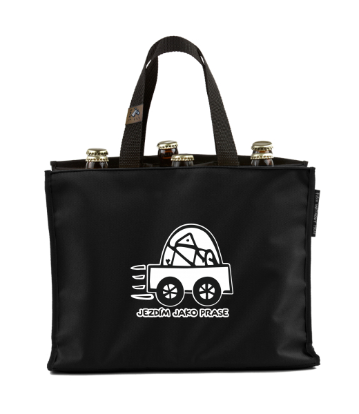 BEER CARRIER - bag for beer with design 1072 JEZDÍM JAKO PRASE in color BLACK