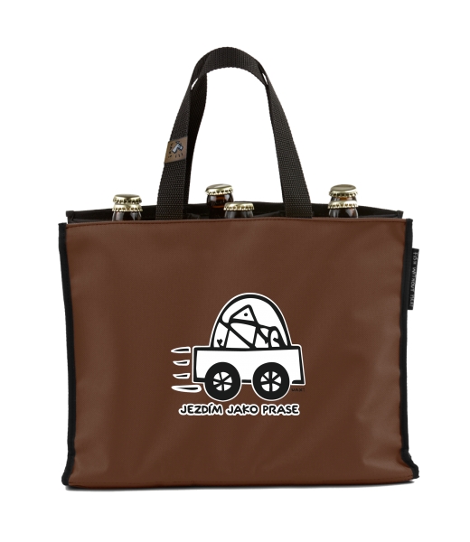 BEER CARRIER - bag for beer with design 1072 JEZDÍM JAKO PRASE in color BROWN SUGAR