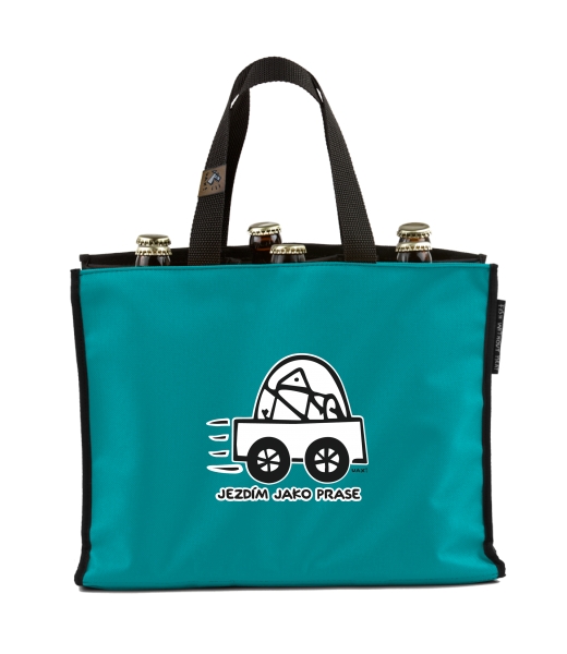 BEER CARRIER - bag for beer with design 1072 JEZDÍM JAKO PRASE in color TURQUOISE