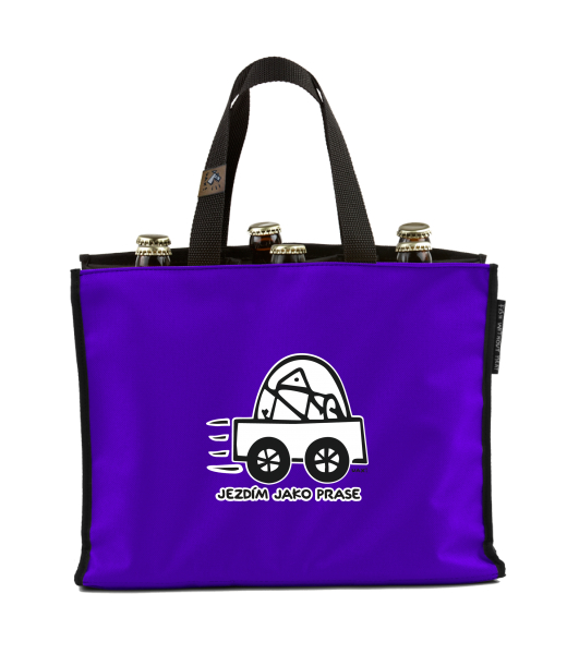 BEER CARRIER - bag for beer with design 1072 JEZDÍM JAKO PRASE in color VIOLET