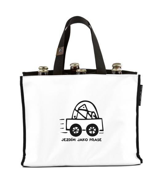 We make sustainable UAX clothing! - hand sewn in the Czech Republic uaxAccessories uaxAll productsBags and sacksBEER CARRIERdesign 1072 - JEZDÍM JAKO PRASEWHITE