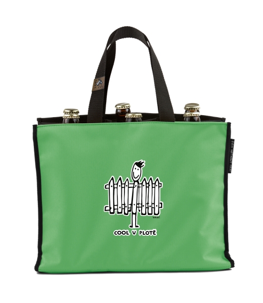 BEER CARRIER - bag for beer with design 1073 COOL V PLOTĚ in color BRIGHT GREEN
