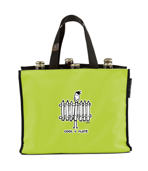 BEER CARRIER - bag for beer with design 1073 COOL V PLOTĚ in color GREEN LIMET