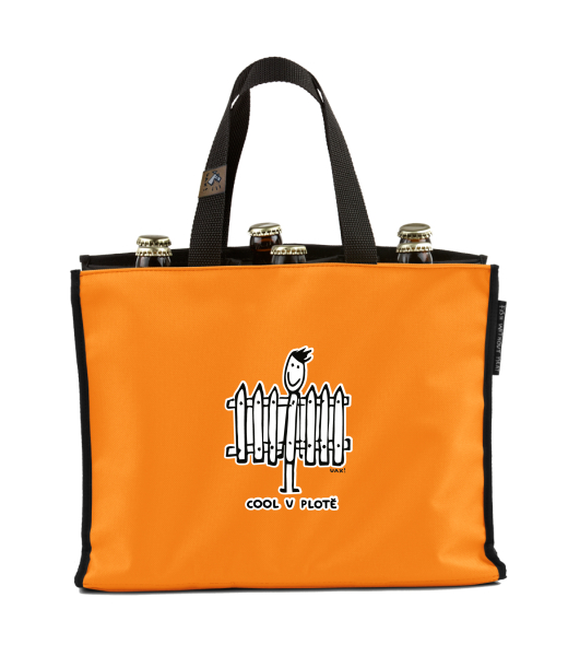 BEER CARRIER - bag for beer with design 1073 COOL V PLOTĚ in color SIGNAL ORANGE