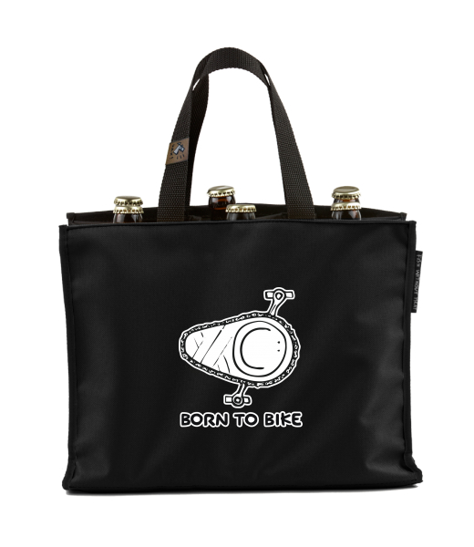 BEER CARRIER - bag for beer with design 1074 BORN TO BIKE in color BLACK